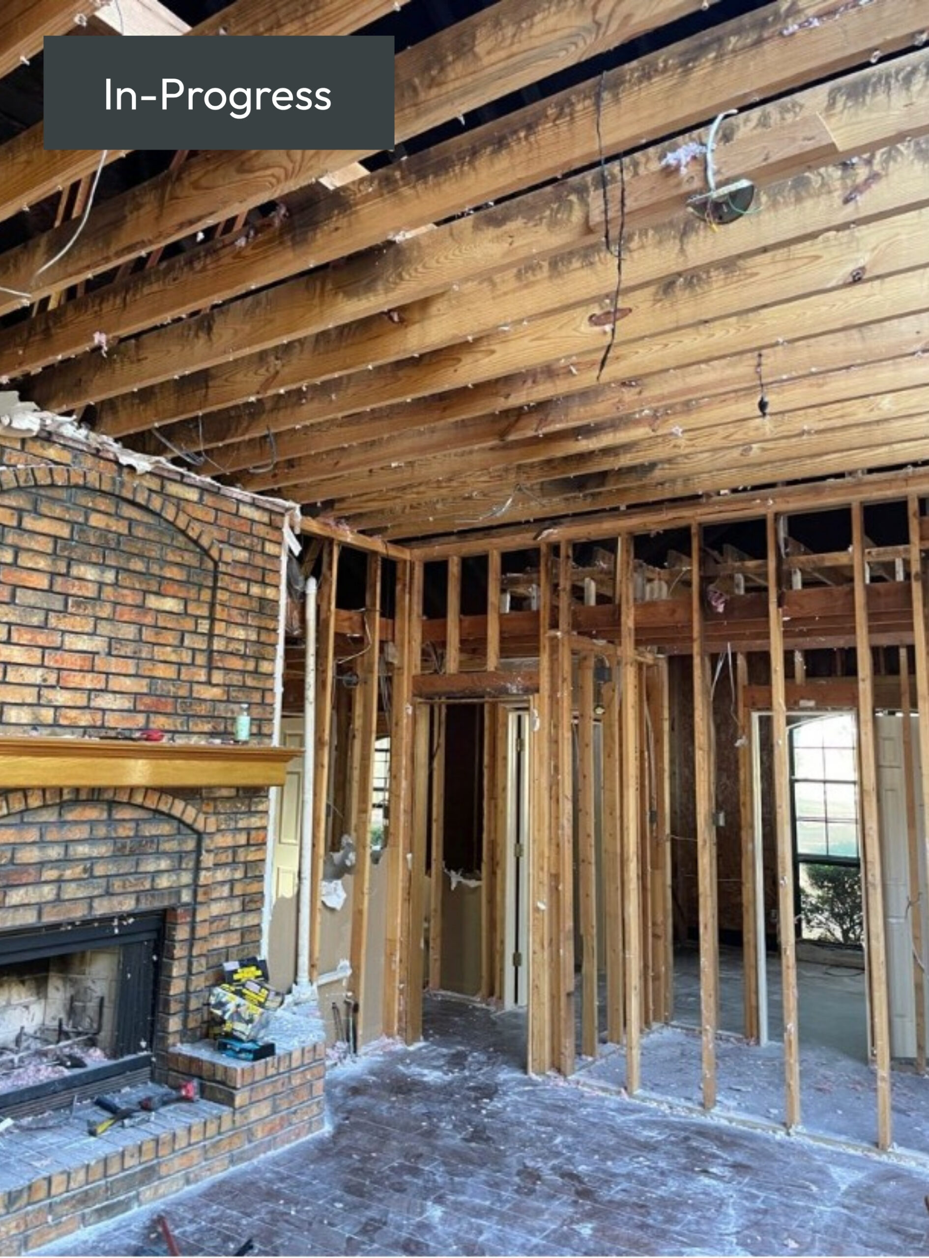 High Caliber Restoration completed a full restoration of a fire-damaged home in Terrell, TX. The house suffered extensive fire damage caused by rodents chewing wiring, rendering it uninhabitable and significantly underinsured. High Caliber stepped in to provide comprehensive services including fire mitigation, mold remediation, water mitigation, construction, emergency services, and pack-out. The team demoed the house down to the framing, then rebuilt it to modern code within 7 months. Key work included replacing insulation, drywall, electrical, HVAC, flooring, cabinets, and roofing. The customer praised the team’s efficiency and outcome, especially given the insurance limitations.